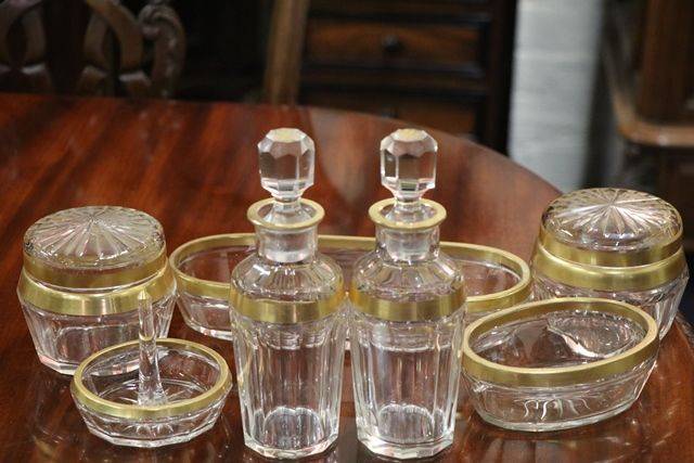 Antique 7 Pieces French Cut Glass Dressing Table Set