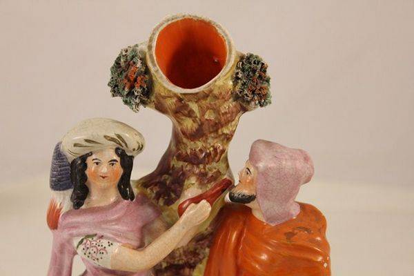 Antique Staffordshire Spill Vase Group. Rebekha Giving Water To Abraham C1860 in good order some crazing measures 24cm x 12cm