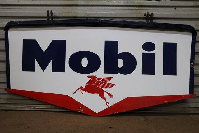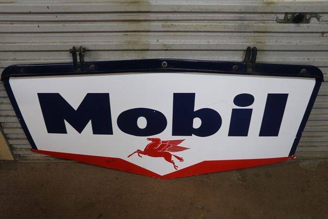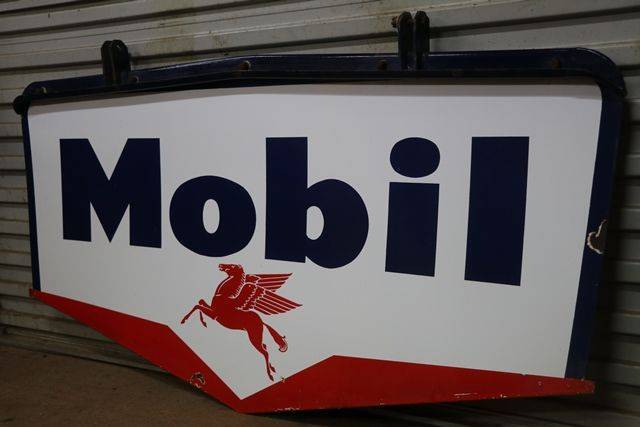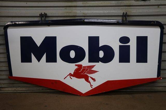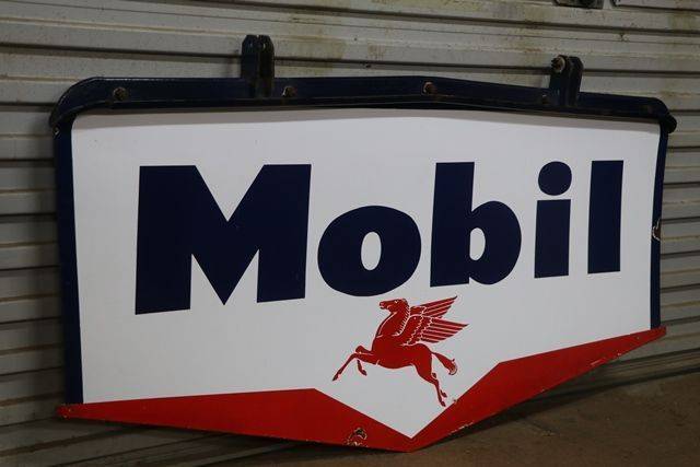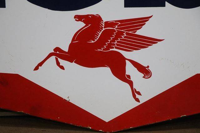 Mobil Double Sided Pegasus Enamel Advertising Sign with Original Hanging Bracket. A very nice clean original sign.