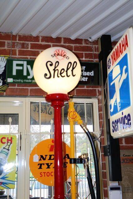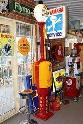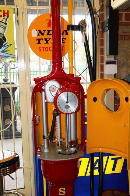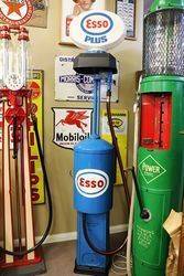 Early Bowser Red Sentry Manual Petrol Pump with Metal Canopy and a Genuine Esso Acrylic Oval Advertising Globe. Older Restoration and Still Presents Well.