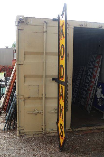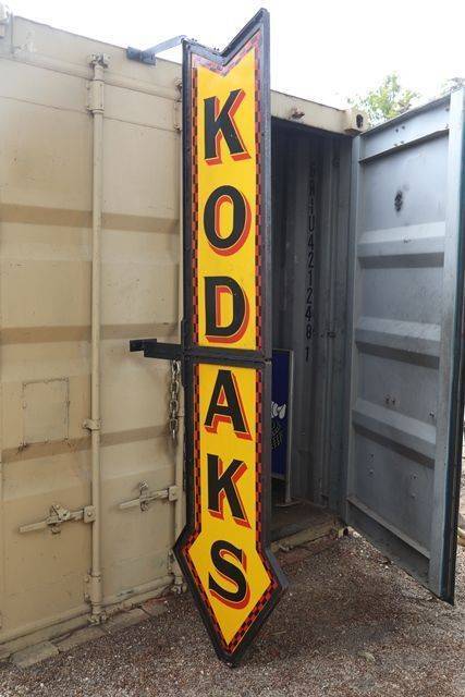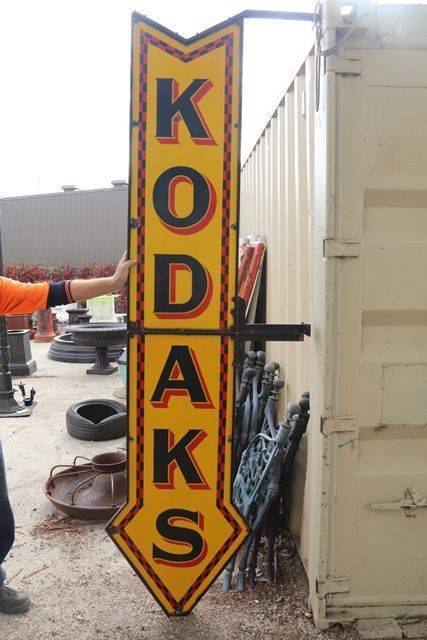 Stunnning and Rare Large Kodaks 2 Piece Double Sided Enamel Wall Mounted Sign in Original Frame Bracket.. Wonderful example of early signage and still in very nice original condition.