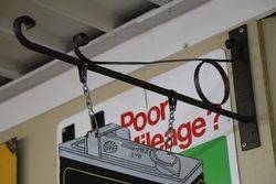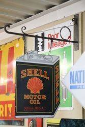 Early Black Shell Motor Oil Can Shaped Die Cut Double Sided Hanging Enamel Advertising Sign With Original Metal Hanging Bracket.