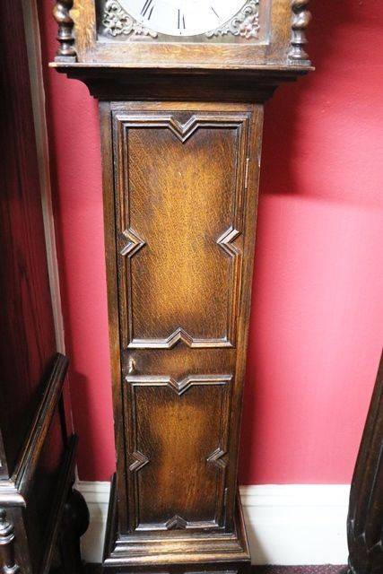 Small Early C20th Oak Grandmother Clock. #