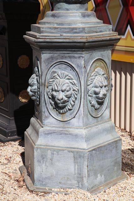Cast Iron Carmen Urn And Dorchester Base ..This Carmen urn on base is of substantial proportions and weight. A great looker. Lion head base shown at $2650