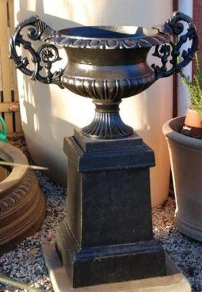 Versaille Cast Iron Urn And Base . This Versailles is a substantial and decorative garden urn and COMES IN THE RUST FINISH ONLY 70cm dia.x 170cm high.