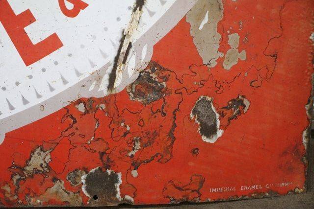 Vintage Orange Virol Convalescents need It Enamel Sign. 122cm wide x 53cm high