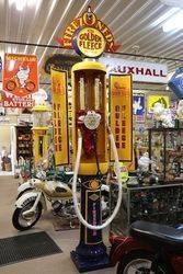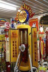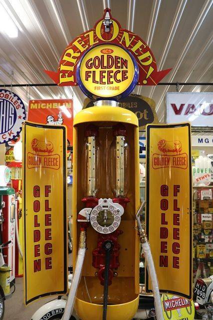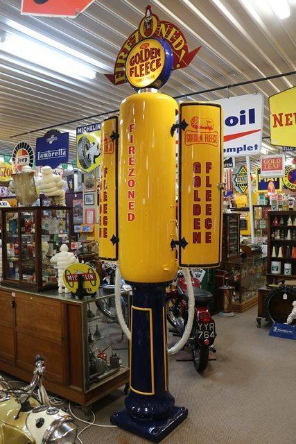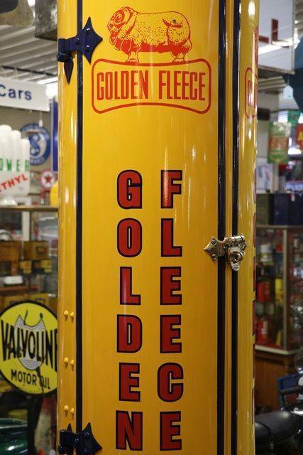 Stunning SATAM 2 Door Cabinet Manual Petrol Pump Restored in Golden Fleece Livery .. SEE PP675 ...this pump in unrestored state.