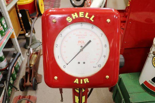 Genuine Restored and Working PCL Presetair Meter on Stand with Revolving Head. In Shell Livery and comes with hose and air nozzle. 120cm high.