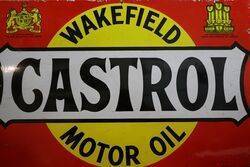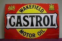 1920's Wakefield Castrol Motor Oil Enamel Advertising Sign by Bruton of Palmers Green with 2 Royal Crests.. Nice Condition.