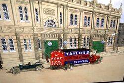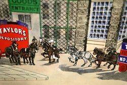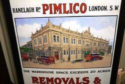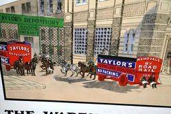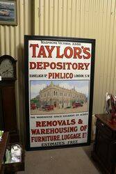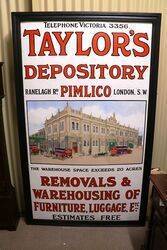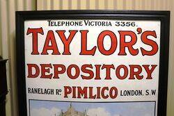 Stunning & Rare 100 year old Antique Taylor's Depository of Pimlico pictorial enamel sign advertising removals & warehousing of furniture , the central part of the sign depicting the warehouse space including horse-drawn wagons and vintage motor car & van..