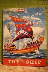 A Stunning Vintage Pictorial..The Ship Enamel Pub Advertising Sign 91cm wide x 123cm high