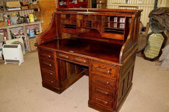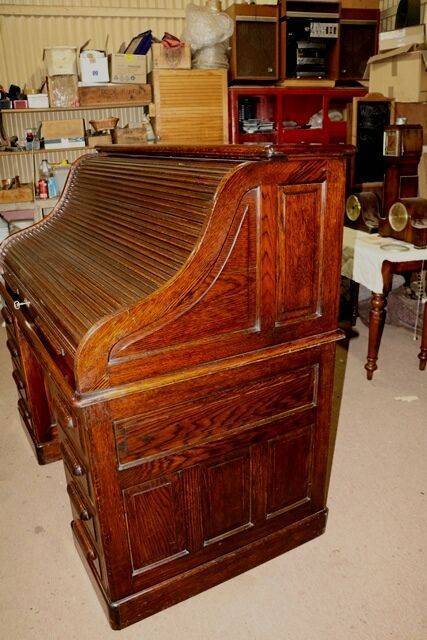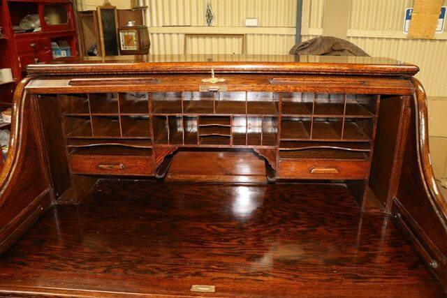 Quality Antique Oak Roll Top Desk. #