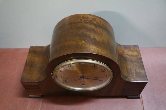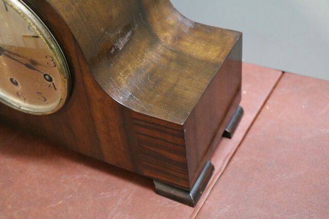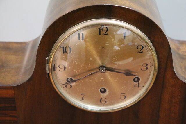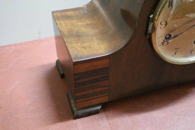 Art Deco Rouge & Black Marble 3 Piece Steeple Clock Set with Applied Gilt Grapes, 8 Day 1/2 hour Movement Needs to be Serviced.