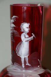8 pce Ruby Glass Liquer Set 1 glass has slight chip to rim overall very good order