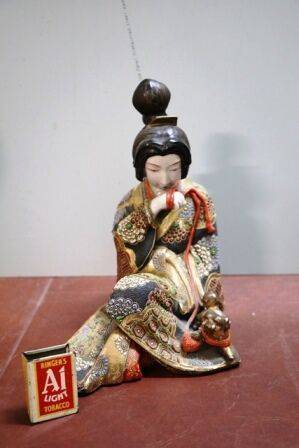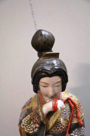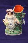 Mid 19th Century Antique Staffordshire Maiden Figure + Spill Vase has some firing cracks measures 29cm x 16cm
