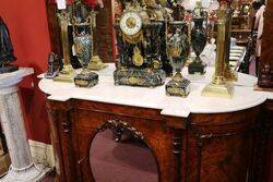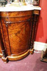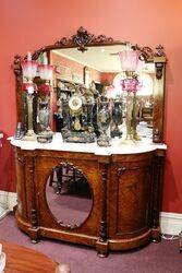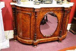 Stunning 3 Door Antique Burr Walnut Carver Mirror Back Credenza with White Marble Top. Oval Mirror to Centre Door.. Wonderful Quality.. Marble has a non offensive repair to one side.. English Circa 1850.