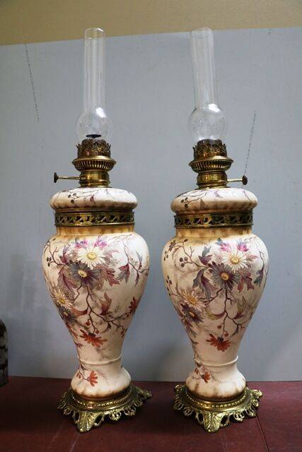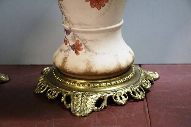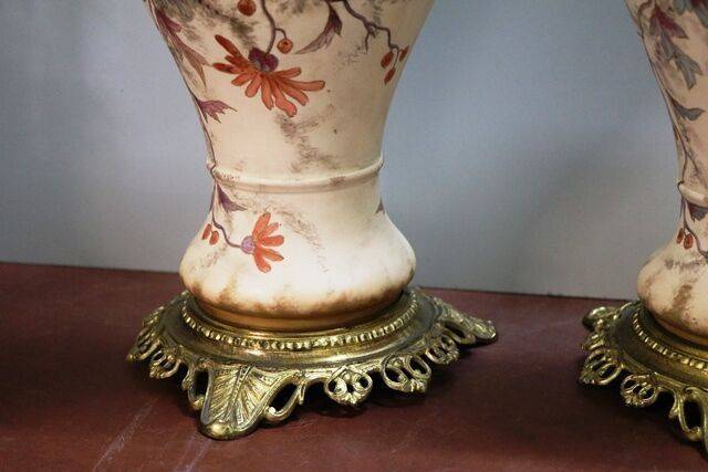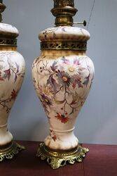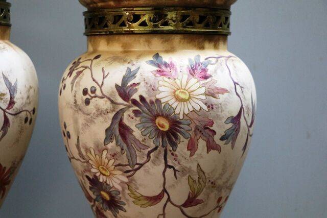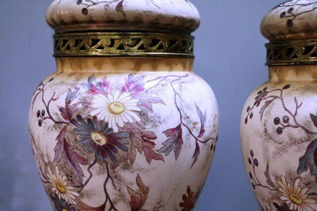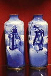 Pair of Antique Royal Doulton Blue Children Vases .. One Repaired .. 9 cm wide x 25 cm high x 9 cm deep