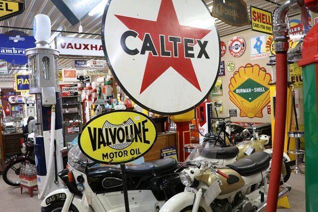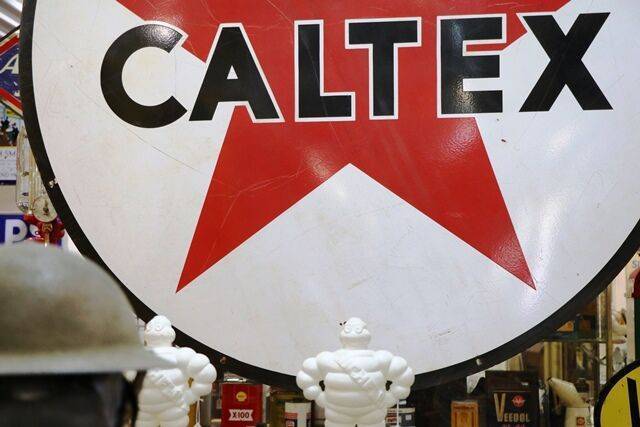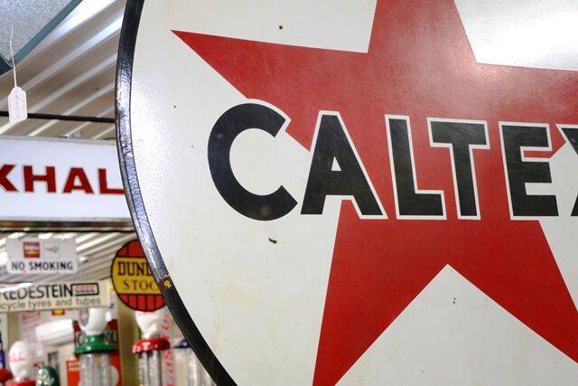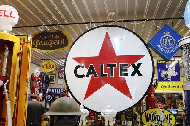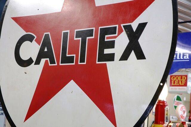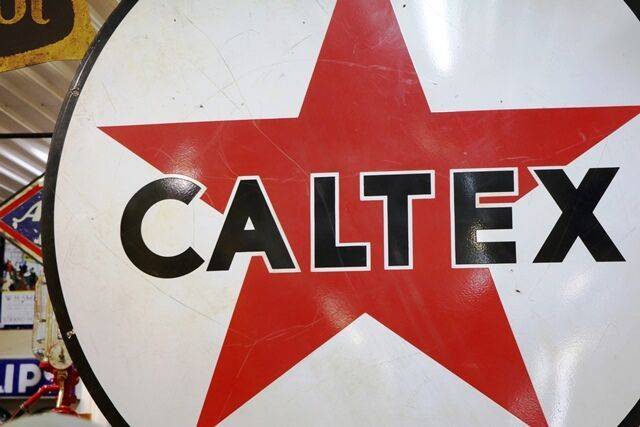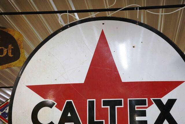Huge Vintage Caltex Double Sided Enamel Advertising Sign. #