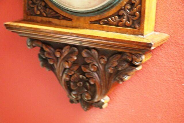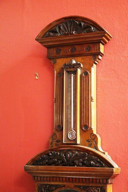 Large Antique Decorative Carved Walnut Aneroid Barometer.