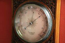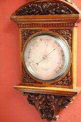Large Late Victorian Antique Decorative Carved Walnut Aneroid Barometer. R & J Beck ltd 68 Cornhill London.