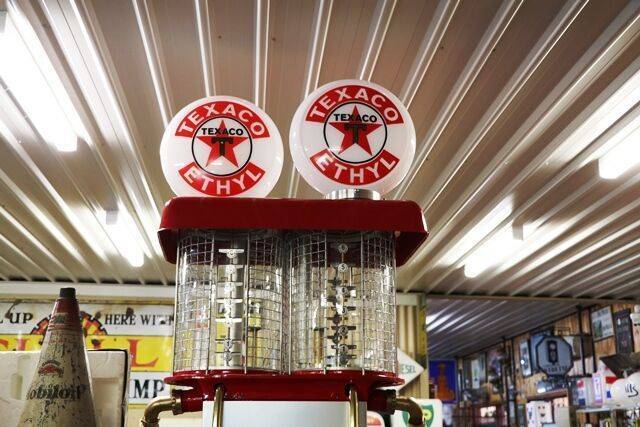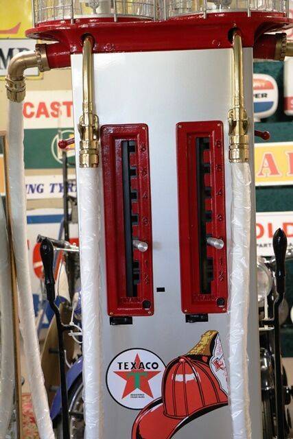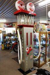Superb Now Rare Gilbert & Barker Twin Glass Cylinder Manual Petrol Pump in TEXACO Livery.. This is a no money spared restoration with 2 Aftermarket Illuminated Texaco Glass Globes.. Truly a Stunning Pump.