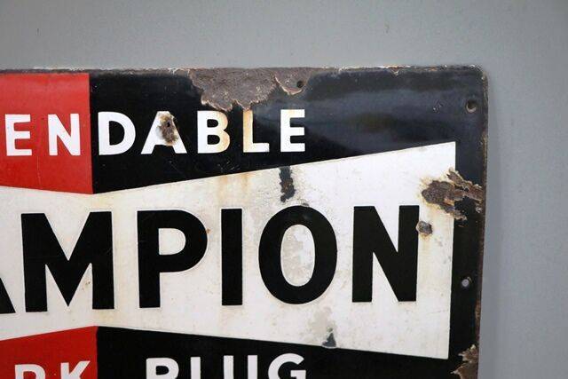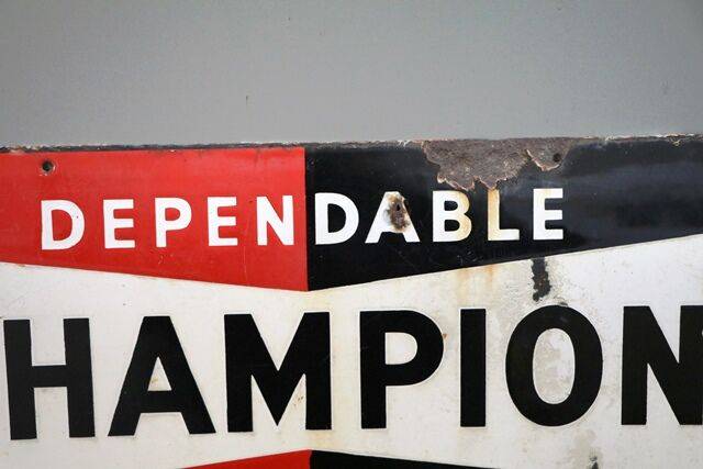 Vintage Champion Dependable Spark Plug Enamel Sign. #