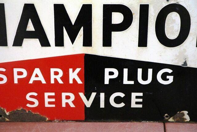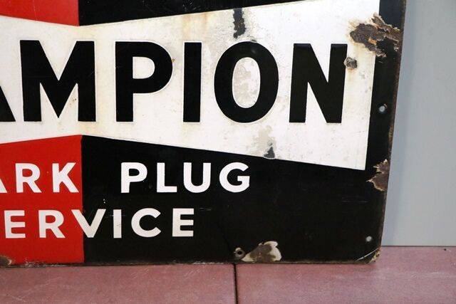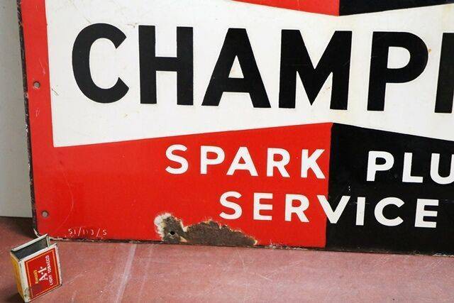 Vintage Champion Dependable Spark Plug Service Enamel Advertising Sign. Dated 1951.