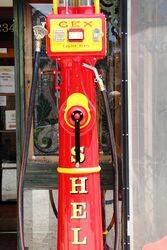 Very Rare Stunning Pair of GEX Deluxe Street Lamp Manual Curb Side Petrol Pumps. This rare pair come as street lamps or can be used in the lower height version with Shell Glass Clam Globes supplied which are also Illuminated.. This Manual Petrol Pump Is One Of The Rarest World Wide. If you want a pump with attitude what could be better for the outside of the Shed.