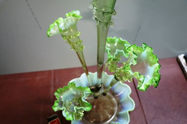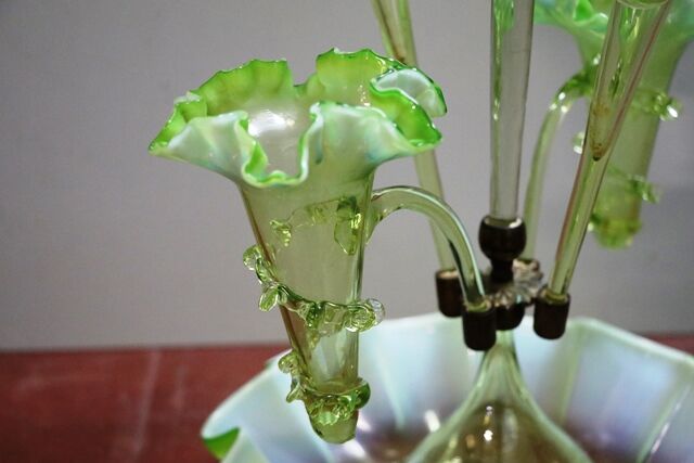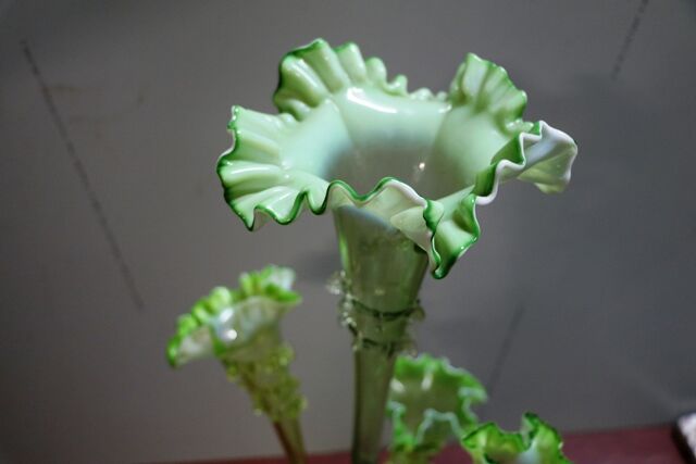 Antique Pair of Ruby Glass Mary Gregory Vases. 24cm high.