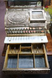 Stunning Antique All Brass National Cash Register Unusual with the Additional Receipt Flat Top Compartment. 40cm wide x 41cm deep x 58ch high.