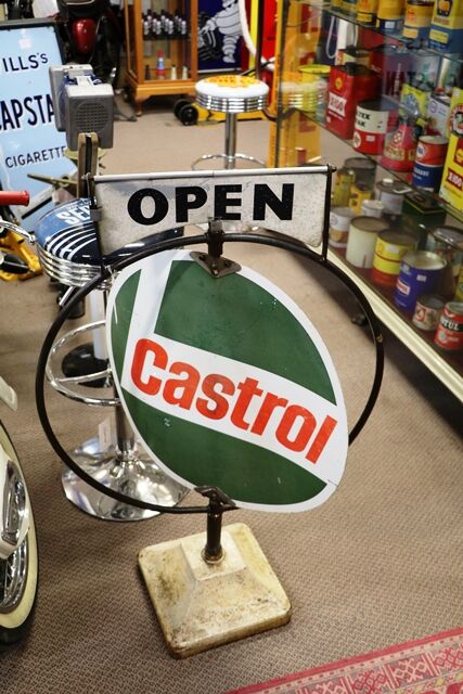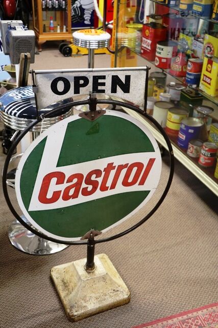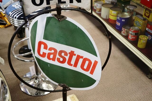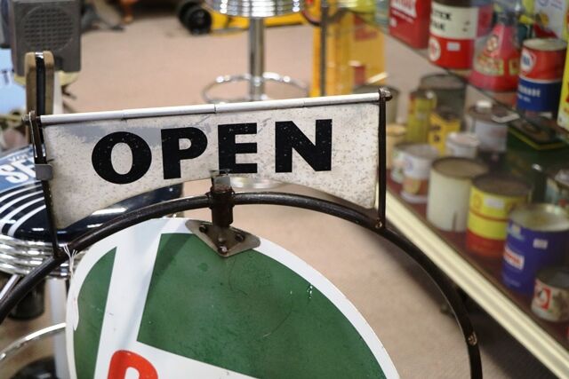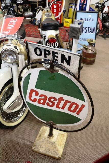 Vintage BP White May & Royal Standard Lamp Oils Double Sided Enamel Sign. 46cm wide x 31cm high.