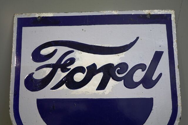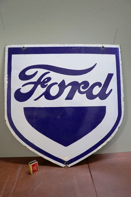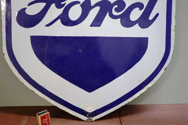 Genuine Vintage FORD Shield Double Sided Enamel Sign. Condition to one Side is Good. The Other side has extensive armature touch ups.