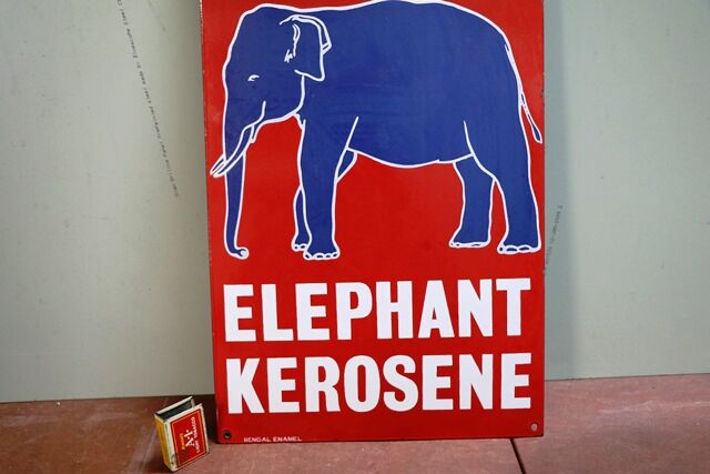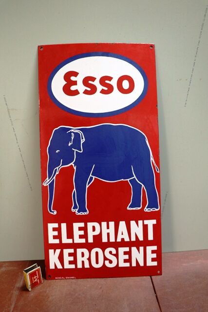 Genuine Vintage Esso Elephant Kerosene Pictorial Enamel Sign. Very nice clean sign, Made by Bengal Enamel.