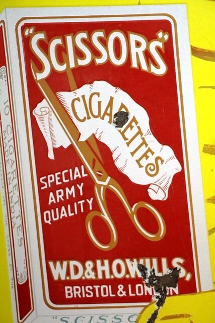 Antique WILL's Tobacco & Cigarettes Strip Enamel Sign. Three Castles---Gold Flake----Capstan Navy Cut.. Good Colour and Gloss.. 51cm wide x 205cm high.