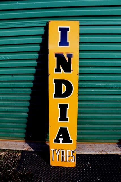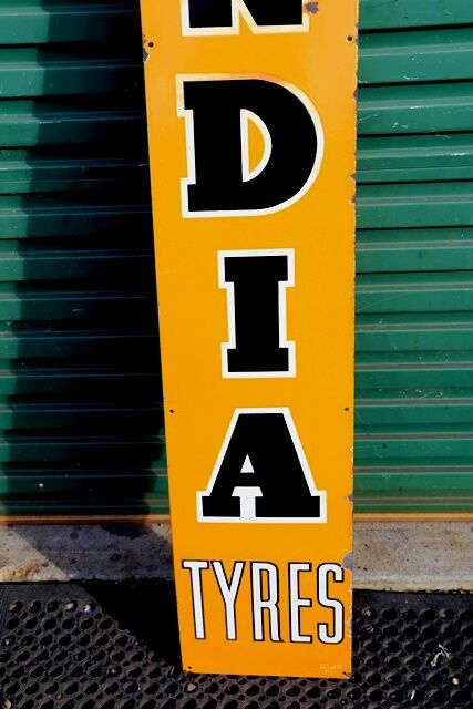 Vintage India Tyres Enamel Vertical Strip Enamel Sign by Franco. Very nice sign with NO TOUCH UPS. 31cm wide x 163cm high.