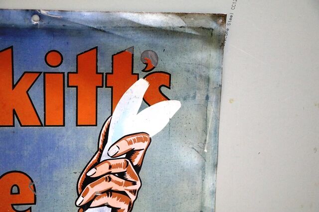 Vintage Old Calabar Dog Biscuits and Poultry Food Enamel Advertising Sign 91cm wide x 30cm high