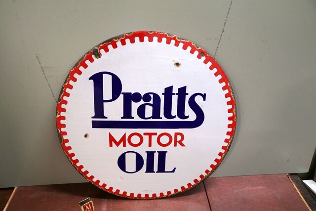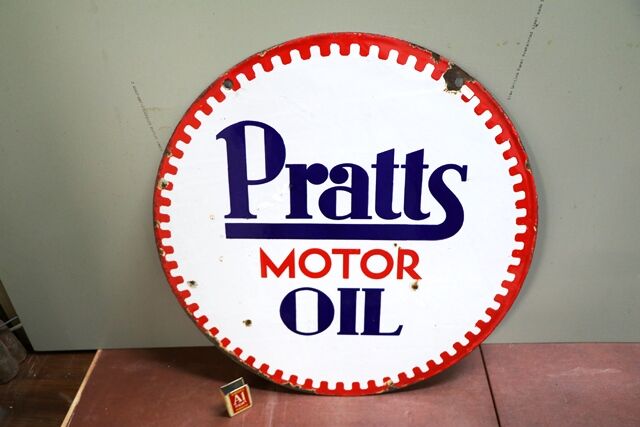 Vintage Pratts Motor Oil Double Sided Enamel Advertising Sign. #