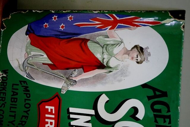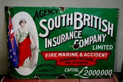 Stunning Antique Agency for South British Insurance Company Pictorial Enamel Sign. Made in Wellington NZ. Great Colour & Gloss with No Touch Ups.