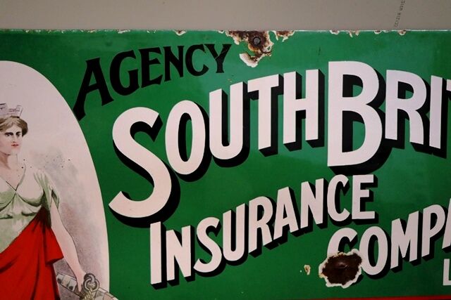 Stunning South British Insurance Company Pictorial Enamel Sign. #