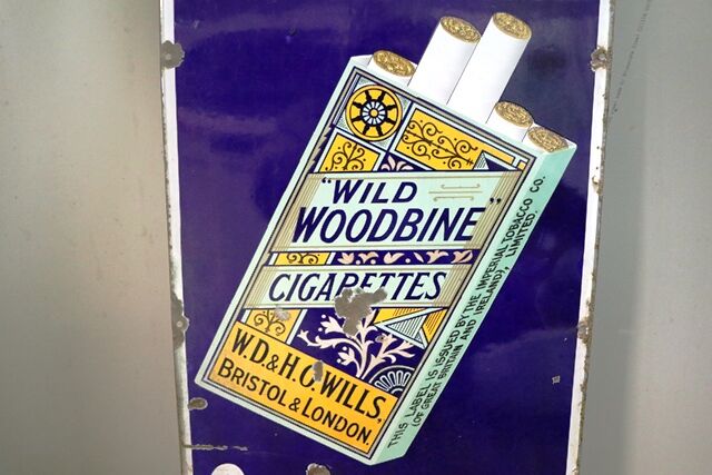 Vintage Woodbine Cigarette Enamel Advertising Sign. 152cm wide x 43cm high.