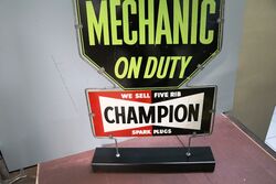 Vintage Champion Mechanic on Duty Double Standing Tin Sign. Nice rare example. 48cm wide x 80cm.