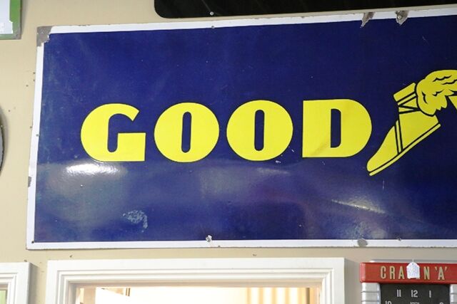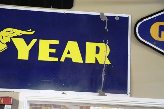 Dunlop Tyre Enamel Advertising Sign .. In Great condition and Dated 1937. 60cm wide x 30cm high