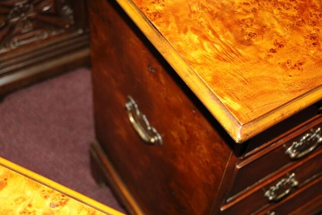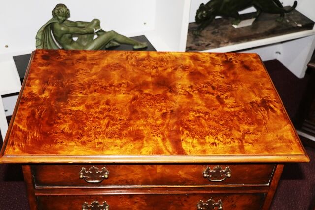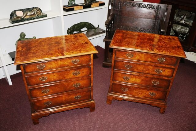 Stunning Small Pair of C20th Birdseye Maple 4 Drawer Chests. Very Heavy and Wonderful Quality,, Ideal as a pair of bedside chests. 70cm wide x 75cn high x45cm deep.