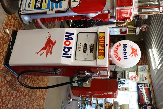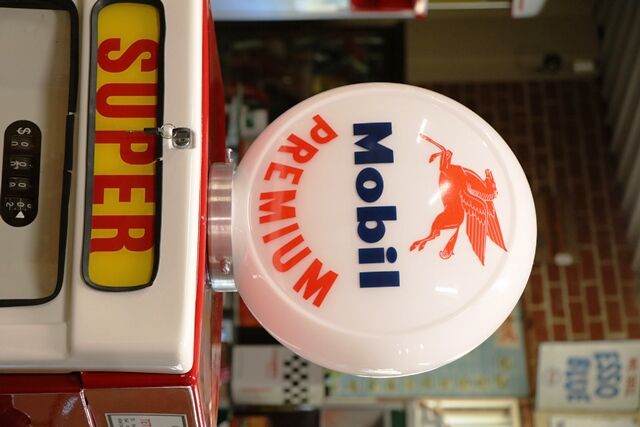 Vintage Wayne 605 Petrol Pump in Mobil Livery. Comes with a Mobil Glass Advertising Globe, Face Plate in Gallons.