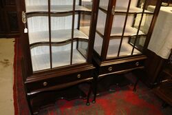 Match Pair of Antique English Mahogany Dome Top Single Door Display Cabinets with Lower Drawer.