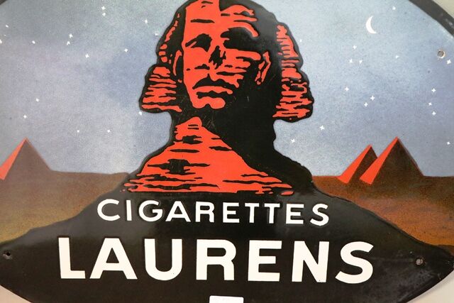 Vintage LAURENS Cigarettes Oval Pictorial Enamel Sign. #