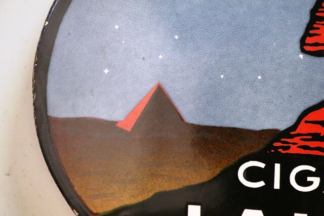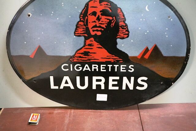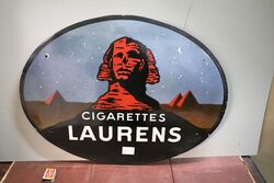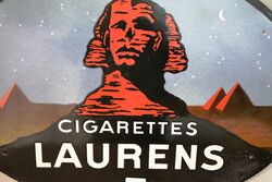 Vintage LAURENS Cigarettes Oval Pictorial Enamel Sign, Depicting Spinx & Pyramid's. In excellent condition.