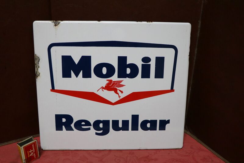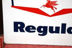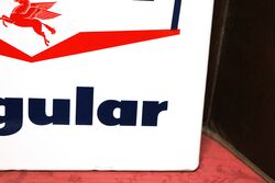 Vintage Gargoyle Mobiloil Double Sided Post Mount Enamel Sign. Vacuum Oil Company ltd. 51cm wide 40cm high.
