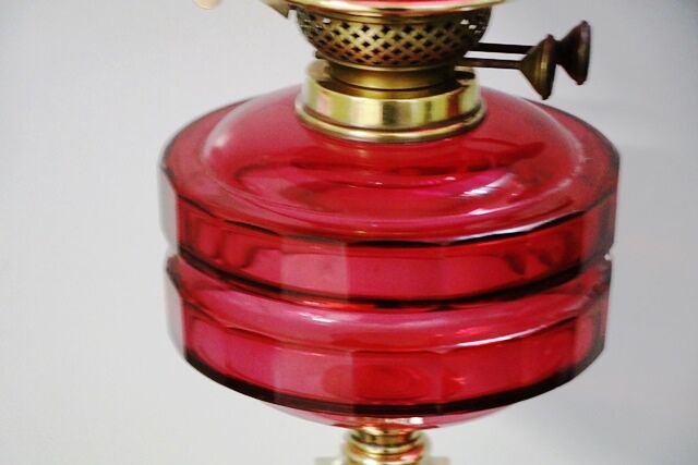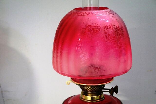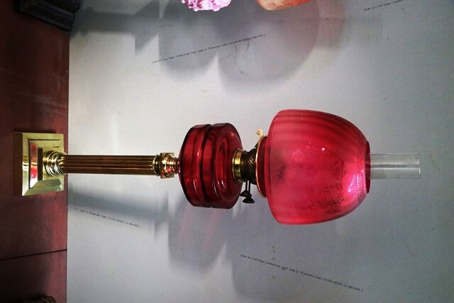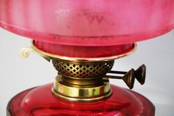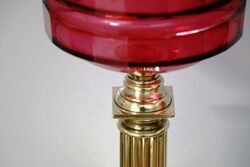 Stunning Victorian Banquet Lamp,Antique Ruby Shade superb cut glass font milk glass & ormolu column original double Burner C1885