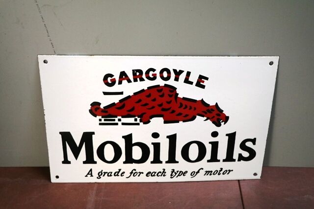 Mobiloil Gargoyle Enamel Advertising Sign ``BB'` Has Had some Restoration as per photos 23cm tall 28cm wide